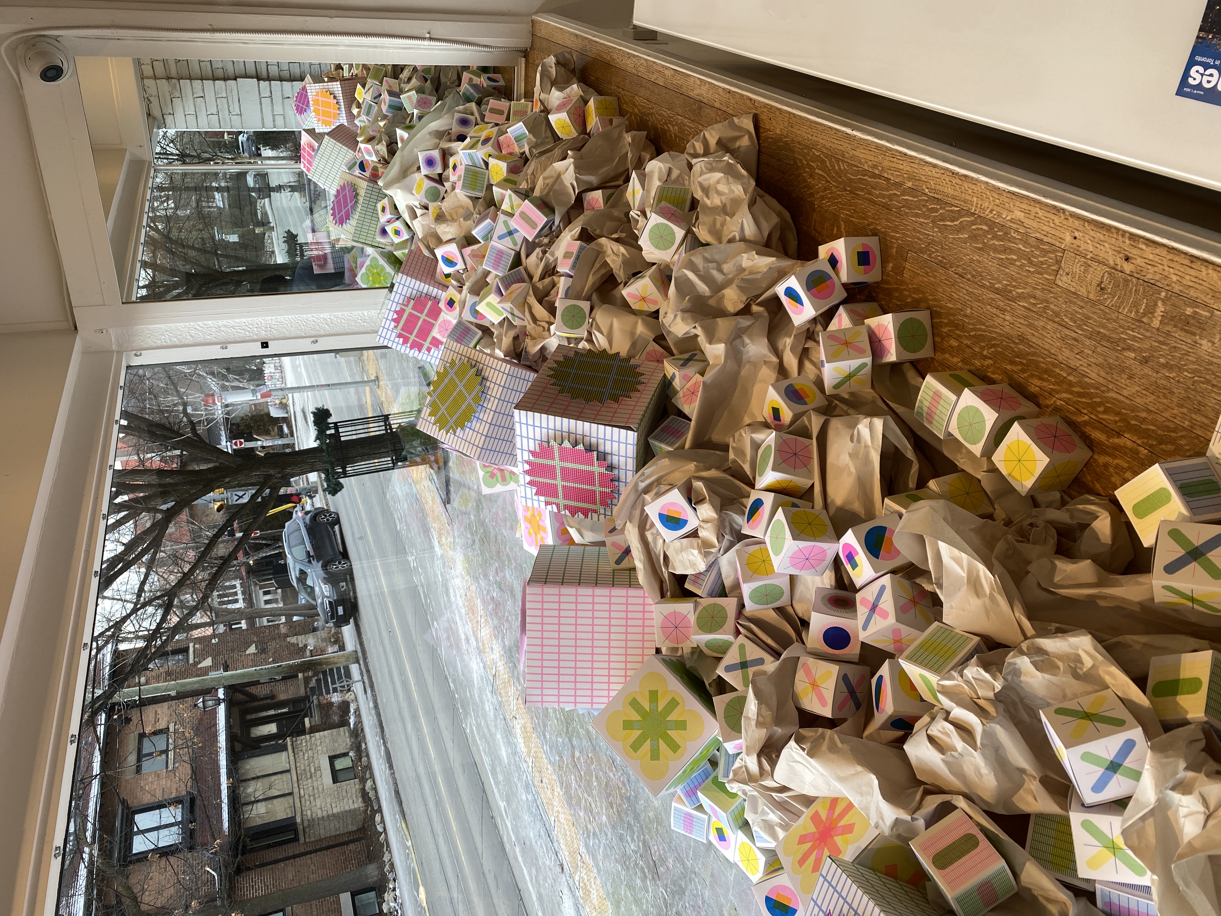 Visitors were invited to take a riso-printed cube home at the end of the exhibit, what fun!